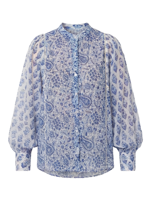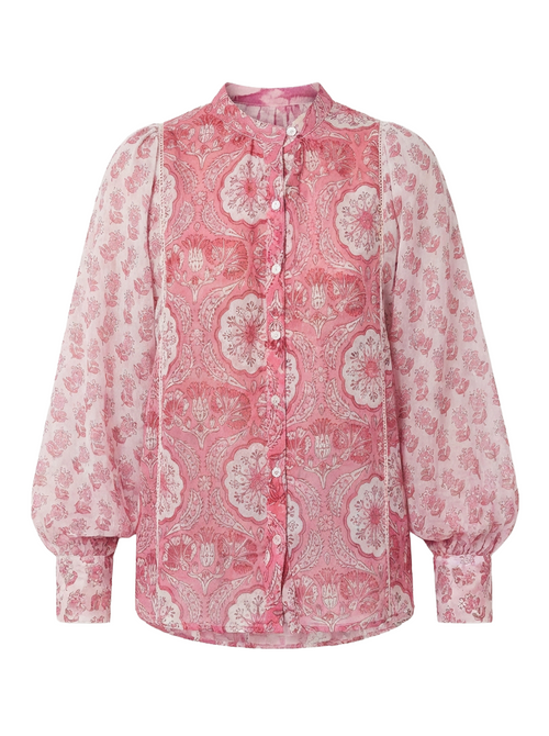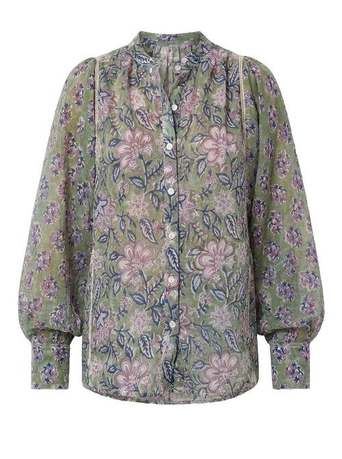 Chaque création Just The Blouse est pensée dans ses moindres détails — des imprimés bi-color soigneusement assemblés aux initiales JTB, délicatement brodées d'un fil d'or, signature discrète d'une pièce qui a une âme.